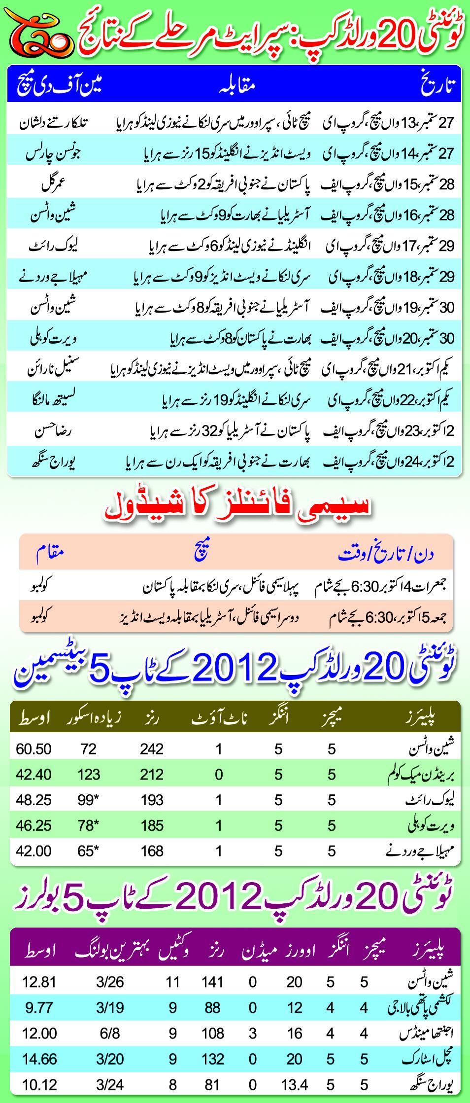 MEI 2021England and New Zealand will square off in the first semi-final of 2021 T20 World Cup on Wednesday. T20 World Cup 2012 Semi-Final - Schedule And Detail In group 1, England and Australia qualified for the T20 World Cup 2021 India take on Afghanistan with semi-final hopes hanging by ... T20 World Cup, 2nd semi-final: Finch elects to field first ... If a semi-final is tied, the teams shall compete in a one over per side eliminator to determine which team . Complete Scorecard of West Indies vs Australia 2nd Semi-Final 2012/13, ICC World Twenty20 only on ESPNcricinfo.com. 2012 ICC World T20 With this, West Indies became the first team to win the T20 World Cup twice. Picture: West Indies captain Darren Sammy and Sri Lankan captain Mahela Jayawardene pose for photographers with the ICC Twenty20 Cricket World Cup trophy in Colombo. West Indies cricket team won the T20 World Cup 2016 by beating England in the final. Highlights, Australia vs New Zealand T20 World Cup 2021 Final, Full Cricket Score: AUS hammer NZ to win maiden title Australia vs New Zealand Live Score, Final Cricket Score and Live Streaming, T20 World Cup 2021 Latest Updates: Southee bowls what turns out to be the final over of the 2021 T20 World Cup, with Marsh and Maxwell collecting a boundary each — the latter reverse-sweeping towards . In fact, this is the first time that this grand tournament will be hosted by an Asian country. — Photo via Twitter. Top scorer at 2021 T20 World Cup: Babar Azam - 264. Top Five Best Man in T20 World cup 2012. Best of Luck for all four teams. Find Above image file . bt New Zealand by 5 wickets. Babar Azam is a Pakistani international cricketer who captains Pakistan in all formats.Babar Azam is widely regarded as one of the best contemporary batsmen . Top Five Best Bowlers in T20 World cup 2012 Semi Final. India managed 260 after they batted first. Top wicket taker at 2021 T20 World Cup: Haris Rauf - 8. AFP Published November 10, 2021. Not having a good batting line-up along with a slow start to the chase, Pakistan were 29 runs short as India reached the final (India went on to win the final, by defeating Sri Lanka). The last time when these two teams met at ICC knockouts was in ICC Cricket World Cup 2019 semi-final. World T20 2012 Championship Finals, Sri Lanka vs West Indies: West Indies 137/6 (Samuels 78, Mendis 4-12, Malinga 0-54) beat Sri Lanka 101 in 18.4 ov (Narine 3-9) by 36 runs. T20 World Cup: Australia cannot afford slip-up against Windies in their bid for semifinal spot Australia, the 2010 runners-up, had made their last semi-final appearance in 2012 when they were . Take a look at the latest ICC Women's T20 World Cup Table - 2012. . The Twenty20 World Cup 2012 is the 4th edition of the T20 World Cup. Australia will look to seek revenge and try to beat England this time around. In group 1, England and Australia qualified for the T20 World Cup 2021 Which groups have certified for the T20 World Cup semi-final? For the T20 World Cup 2021 teams that need to play the qualifiers, they will play eight games before getting to the semi . Here's everything you need to know about the teams, fixtures and structure of the semi-finals of the ICC Men's T20 World Cup 2021. Pakistan beat Namibia to reach T20 World Cup semi-finals after Babar Azam, Mohammad Rizwan sparkle again with the bat Pakistan defeated Namibia by 45 runs to book their place in the T20 World Cup . India lost their opening two matches to Pakistan and New Zealand before exiting the race for the semi-finals for the first time after 2012 edition. Babar Azam and co will prime Group 2 in the event that they beat Scotland of their ultimate Tremendous 12 match, which they appear virtually sure to do. The Aussies made their first semi-final of the tournament since 2012 with four wins and a better run-rate than South Africa. England had won that match and eventually went on to win the world cup 2019. World cup Twenty 20 Super 8 results. T20 World Cup 2016 Winner- West Indies. T20 World Cup semi-finals. T20 World Cup, semi-final: Williamson elects to field first. T20 World Cup Full Coverage | Schedule | Photos | Points Table. There are just four matches - the last Super 12 outing three knockout out fixtures - to . However, only two teams are allowed for the semi-finals. For pre-tournament favourites India, nothing has gone to plan so far in the T20 World Cup. The clash is a rematch of the 2010 T20 World Cup semi-final, in which Australia pulled off a miraculous three-wicket victory thanks to one of the finest innings in the format's history from . There are just four matches - the last Super 12 outing three knockout out fixtures - to go before the winner of this . Find the complete scorecard of West Indies vs Australia 2nd Semi-Final Online The legendary Kapil Dev has questioned the commitment of BCCI and India players as he claims they prioritised IPL over the country that culminated into a poor show at the ongoing ICC Men's T20 World Cup 2021. Following are the details of the ICC T20 World Cup 2021 participating team's qualifying scenario for the semi finals of the ICC . Originally the event was scheduled to be held in Australia from 18 October to 15 November 2020, but in July 2020 . Everything you need to know about the teams, fixtures and structure of the semi-finals of the ICC Men's T20 World Cup 2021. The Twenty20 World Cup 2012 is the 4th edition of the T20 World Cup. West Indies lost only one match against Afghanistan. England had won their first ICC title (ICC T20 World Cup) against Australia in 2010. The league stage of Group 1 in the ICC T20 World Cup has been completed. This was the first World Twenty20 tournament held in an Asian country, the last three having been held in . Possible other 2 Semi-Finalists could be (3) Australia & (4) New Zealand. In the semi-finals on 30 March, Pakistan had a match with its fiercest rival, India. World cup Twenty 20 Super 8 results. Pakistan and Australia will square off in the second